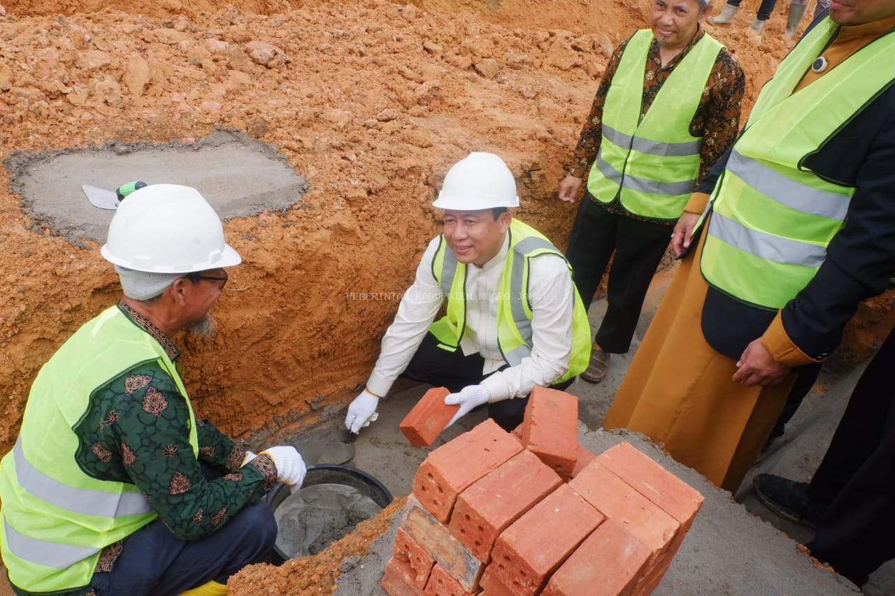 Usai sambutan, Bupati lakukan peletakan batu pertama pembangunan masjid, yang disaksikan oleh ketua yayasan, seluruh panitia, serta tamu undangan yang hadir. (*)