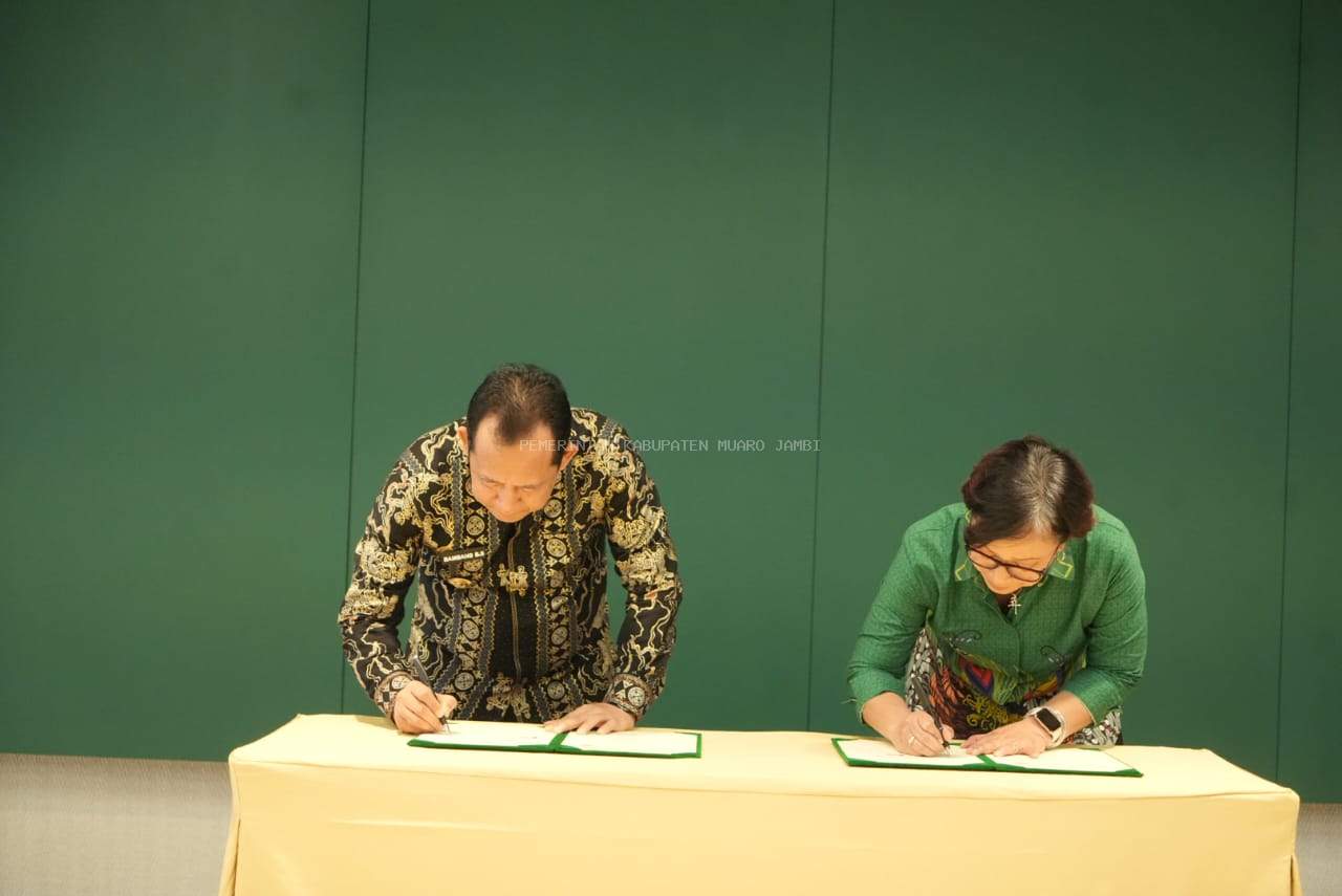 Penandatanganan kerjasama kali ini guna pengembangan sumber daya manusia di Kabupaten Muaro Jambi.
